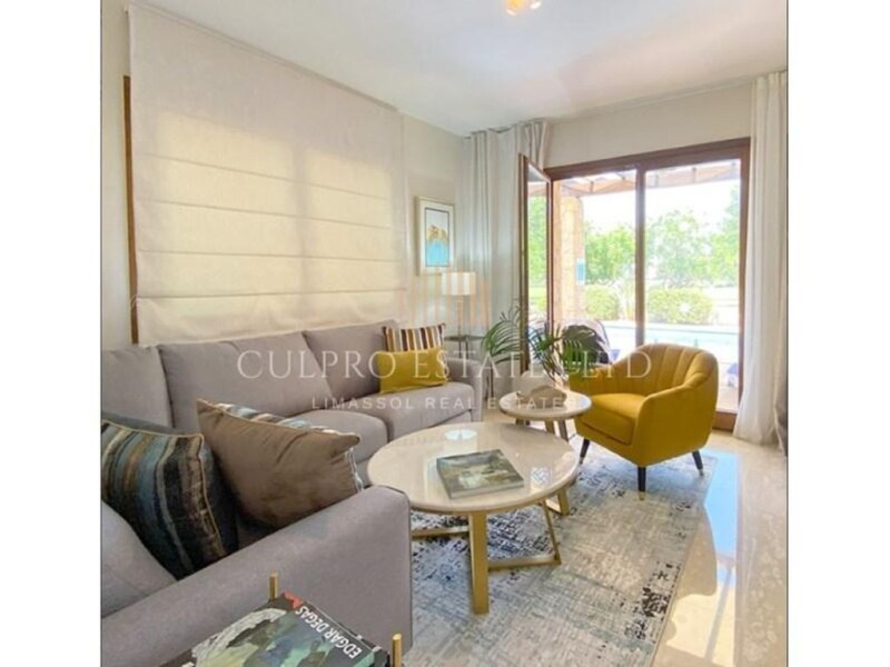 2-bedroom villa located in a gated complex of Aphrodite Hills Resort. The complex has all amenities: bars, restaurants, coffee shops, tennis court, soccer, golf, gym, kids club, security service 24x7 etc. The villa has been renovated to a very high standards (new bathrooms, new kitchen, new air conditioners etc). House: 105m2 Covered Verandas: 10m2 Uncovered Verandas: 30m2 - 2 bedrooms - 2 bathrooms - Fully Furnished - Laundry room - Large balcony with beautiful views - Covered parking - Private swimming pool - Garden - Alarm - Storage room - Energy Efficiency: A - Pets are allowed. Price for rent: 3000 euros per month.