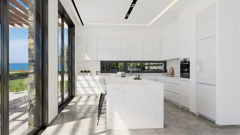 <p>5 Bedroom Villa in Sea Caves, Peyia, Paphos.</p> <p>This modern villa, under construction, is situated in an outstanding, quiet location at the Sea Caves area of Peyia, with stunning views of the sea and magnificent sunsets.</p> <p>This property is not part of a complex and is set on a very large plot with overflow swimming pool with poolside facilities and bar, only 200 m from the sea, offering complete privacy and tranquility.</p> <p>Exceptionally designed, with finishes to the highest standards, this spacious villa comprises a basement and two more floors with spacious living / dining / kitchen area, guest WC, extensive verandas and 5 bedrooms (including maid’s room), 5 bathrooms and balconies as well as a 27 m² sunset veranda garden on first floor.</p> <p>This smart home is offered unfurnished and some of the extras include: provision for under floor heating and air conitioning throughout, automation system for sound system, lighting and roller shutters (provision for shutters and sound system), complete CCTV system with 10 cameras, suspended ceiling in selected areas, provision for satellite dish, stamped concrete for driveway and guest parking area.</p> <p>Landscaping not included.</p> <p>Optional: Tennis Court for additional cost of €100,000 + VAT</p> <p>Delivery: 4-6 months from signing of Contract.</p>.