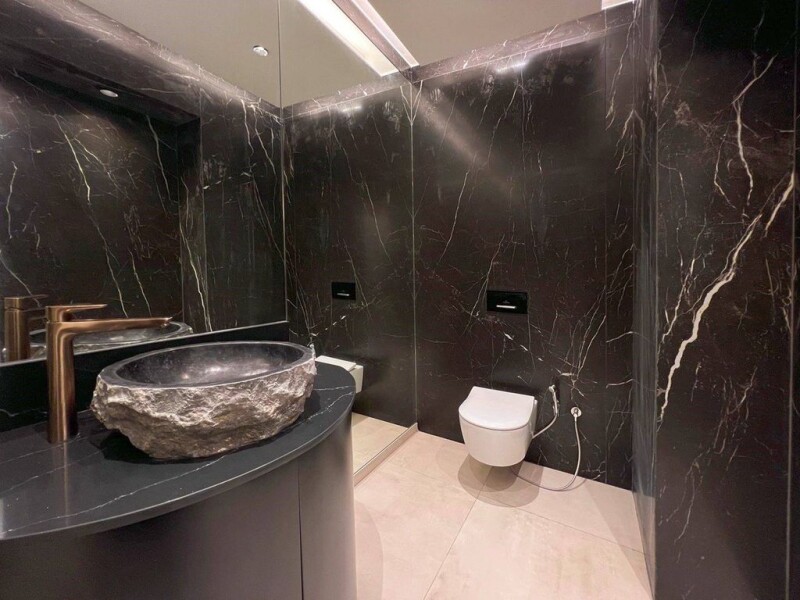This unique 3-level residence, situated in the quiet neighborhood of Latsia in Nicosia, offers a luxurious living experience. The property is accessed via an almost private circular road that leads to an oversized cul-de-sac, ensuring privacy and safety for residents. Ideally located, the house is a short drive from Nicosia center and near the highway, providing quick access to all cities while avoiding city traffic. Schools, supermarkets and other facilities are conveniently close by. Each level of the house features at least one bedroom and two bathrooms, along with spacious living areas, making this home extremely accommodating and versatile for different family and guest needs. The design of the house prioritizes privacy on each floor. The ground floor welcomes you with a grand open-plan living area and a designer kitchen, while the basement offers ultimate privacy with a cinema room and en suite bedrooms. The home is constructed with the finest Italian flooring and bathroom materials. The expansive rooftop garden is covered with perforated designer PVC panels attached to an impressive modern structure and includes a bedroom and private overflowing pool, making it ideal for parties, gatherings, and barbecues, while offering unobstructed mountain views.