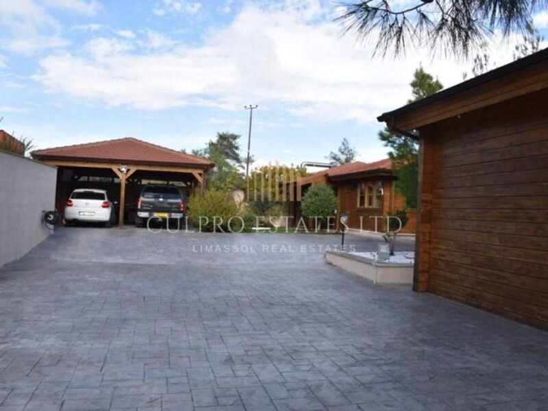 Beautiful 3 level country house located in a nice and quiet area of Sanida Village with unobstructed mountain view. The house has a big garden with a small barbecue house, large swimming pool, 2 covered parking place, laundry house and storage room. The Main house - Wooden Construction (Laminated Square Logs 180X190 mm from KUUSAMO factory Finland) - Indoor total covered area 100 sq.m. (ground floor 75 sq.m. + attic 25 sq.m.) - Covered verandas 60 sq.m. - Storage 10 sq.m. - Covered garage 20 sq.m. ( 2 cars) - Swimming Pool 4mX8m heated with solar panel, temperature can reach 38 degrees Celsius - Jacuzzi Katalina American for 5 persons - Sauna 2mX1.5m - Open plan kitchen and living area - Fireplace Separate room - 16 sq.m. - Laundry room with kitchen Closed barbecue area - 30 sq.m - Full barbecue facilities - Kitchen - dinning Area - W.C with shower - Aluminum sliding doors for winter/summer Guest House (concrete) - 60 sq.m. - 2 Bedrooms - Bathroom - Open Plan Kitchen and Living Room - Independent entrance - Fireplace - Laundry Room - Parking place - Private garden.