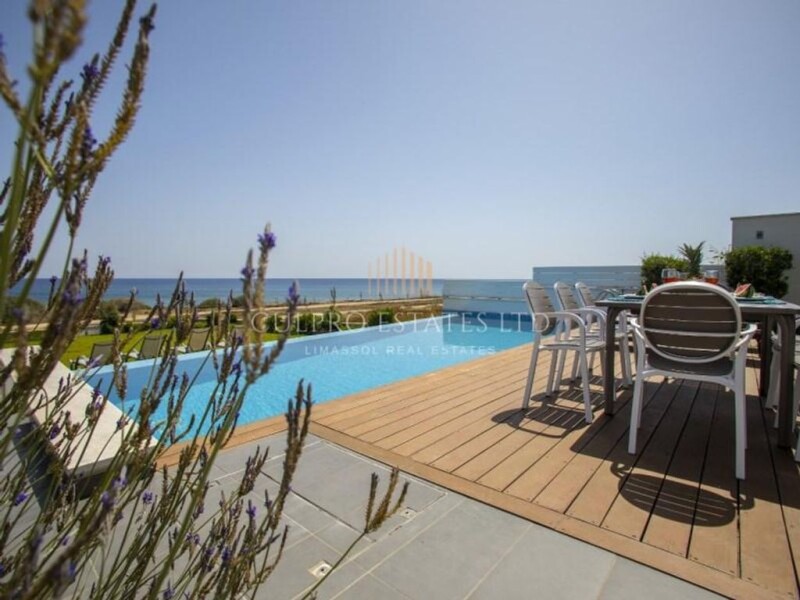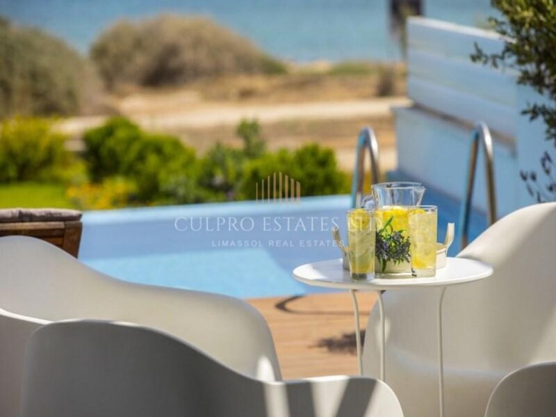 A distinctive and contemporary seaside residence, meticulously designed, furnished, and equipped with opulent luxury and meticulous attention to detail. The house boasts a minimal and modern aesthetic inspired by the colors and style of a Greek island, complemented by panoramic views of the crystal-clear Mediterranean waters. The main level encompasses a spacious living room, an open-plan kitchen with a breakfast bar and dining table, and expansive balcony doors that seamlessly connect the indoor and outdoor spaces, creating a vast living area with uninterrupted sea vistas. Additionally, this floor features a double bedroom, a guest WC, and shower. The lower level hosts a twin bedroom with an en-suite shower and a mini kitchenette, along with a games room equipped with a large flat-screen TV, gaming console, and a double sofa bed. Ascending to the first floor reveals three more bedroomstwo en-suite, a double and a twin, and a generously sized master bedroom with a unique designer bathroom featuring a full glass window overlooking the seafront. Constructed in 2018, this property is exempt from VAT. Location on the website is approximate.