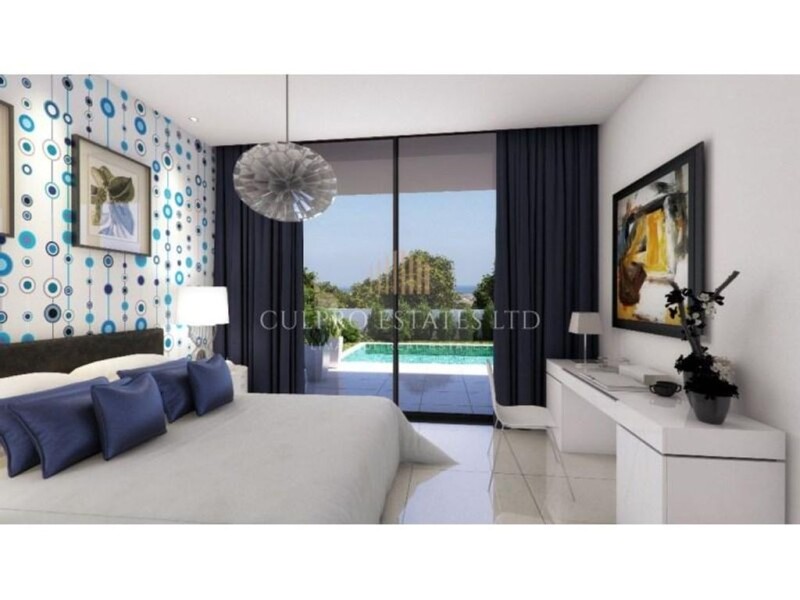 This 4-bedroom luxury villa is located in a secure residence complex consisting of 27 detached villas, in a quiet residential location minutes away from the centre of Protaras within a walking distance from seafront promenade. The villa is located a half kilometre away from picturesque sandy beaches and provides amazing view to the sea. There is also easy access to numerous shops, restaurants, cafes, amusement facilities, playgrounds and other necessary infrastructure, as well as to highway. The price indicated is VAT exclusive.