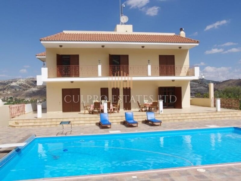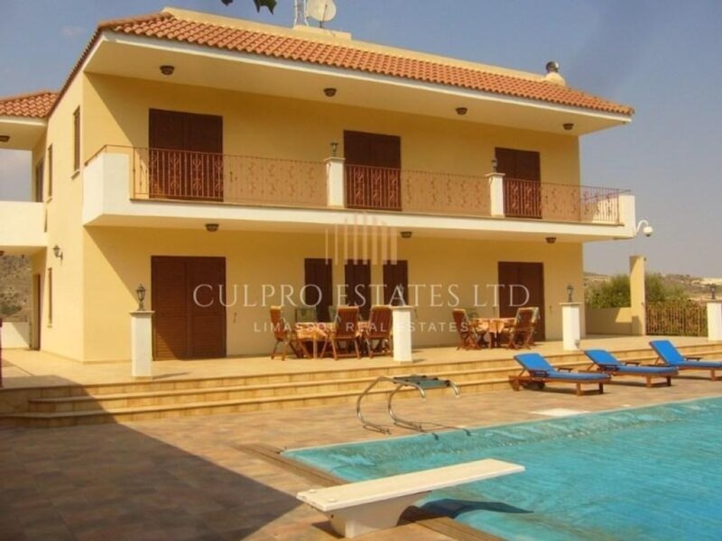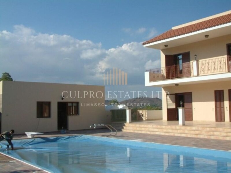 Luxury villa located in the picturesque Ayia Anna village, with beautiful hillside views all round, 10 minutes to Larnaca town and beaches, 25 minutes drive to Nicosia, 35 minutes drive to Limassol. Quiet location, with magnificent views of the surrounding countryside. The plot includes 6 bedroom main house, 2 bedroom guest house and 1 bedroom maid/housekeeper house, all self contained. Plot size: 3345 sq.m Main Villa covered area: 1st floor: 170 sq.m 2nd floor: 130 sq.m 3rd floor: 130 sq.m 4th floor: 20 sqm covered area, leading to roof garden, large area with solar water heating panels, storage facilities and space to install photo voltaic panels to generate electricity to run some of the complex facilities. Facilities: - Total of 9 bedrooms in the complex - Total of 7 bathrooms/WC - 2 Master Bedrooms with en-suite WC & shower. - 3 large Double bedrooms. - 2 offices. One of these offices contains the control for the internal and external security cameras, safety devices, antennas and all supporting equipment. - The other office is located with the cinema and gym. - Swimming pool 7x13m with an electrically operated cover, diving board and hydro massage. (Provision to supply heating for the pool) large area of tiled space for sun loungers and al fresco dining. - Covered area for heating and pool machinery. - Covered small room near the main gates away from home that contains the standby generator (in case of power failure of the public electricity) storage for garden tools etc. - Outdoor shower - Fireplace - Rotating Security cameras with high optical zoom covering 360 degree for better supervision in the gardens, exterior of the house and perimeters. Several fixed cameras. (Total 24) - 1 Room for Home Cinema complete with all equipment and furniture. - 1 room for gym. - 2 Kitchenets. - 1 Large family sitting room with large fireplace. - 2 living rooms. - The building has a central lift. - Heating and air conditioners in all rooms. - Covered Garage and workshop takes 4 - 8 vehicles. - Guest House 80 sq.m: 2 bedrooms, shower and WC. - Housekeeper's house 50 sq.m: 1 bedroom, kitchen, shower and WC. - The house is enclosed with a concrete block wall to a height of 2 meters with additional safety railings and a remote controlled iron electric gate at the end of the drive. - Underground water well to supply garden irrigation system. - Mature garden offering a variety of plants, shrubs and approx. 100 fruit trees. - Outdoor shower facility with wash basin located by pool. - 3 extra water tanks for greater water storage. - Perimeter and outdoor lights. - Great barbeque set up with storage area outside the kitchen. - Rustic outdoor oven (kleftiko), with space to store timber. - The villa and additional houses are sold complete with all fittings and features.