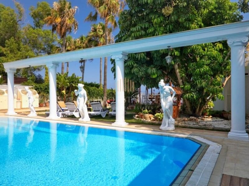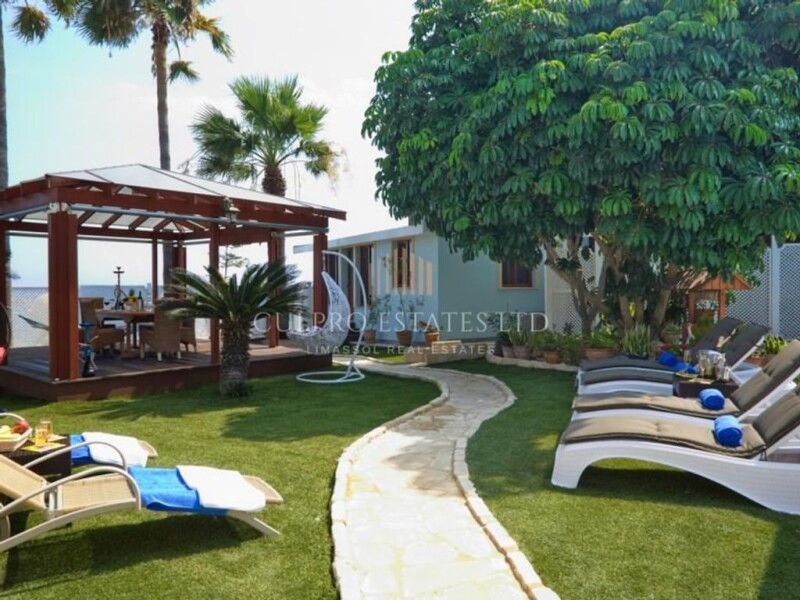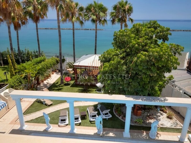 We are delighted to introduce you a stunning villa situated at the beachfront of Limassol, Cyprus. It is located at the Tourist Area, where you can find all the main and luxury shops, restaurants, cinemas, bars and clubs. All the necessities are reachable by walking distance and if you use a car, you will need no more than 15-20 minutes to reach any part of the town to supply your needs. You can literally access the beach by opening one of the two gates from the garden and within 10-15 meters; you are already enjoying the Mediterranean Sea! It is made for living, in terms that there are two floors that can be used separately from each other as each one has a kitchen, living room and bedrooms, ideal for big families. There is also a sauna located in a separate building by the beach which is heated up with wood, can accumulate up to 10 people and this building has its own living room, wc and showers.