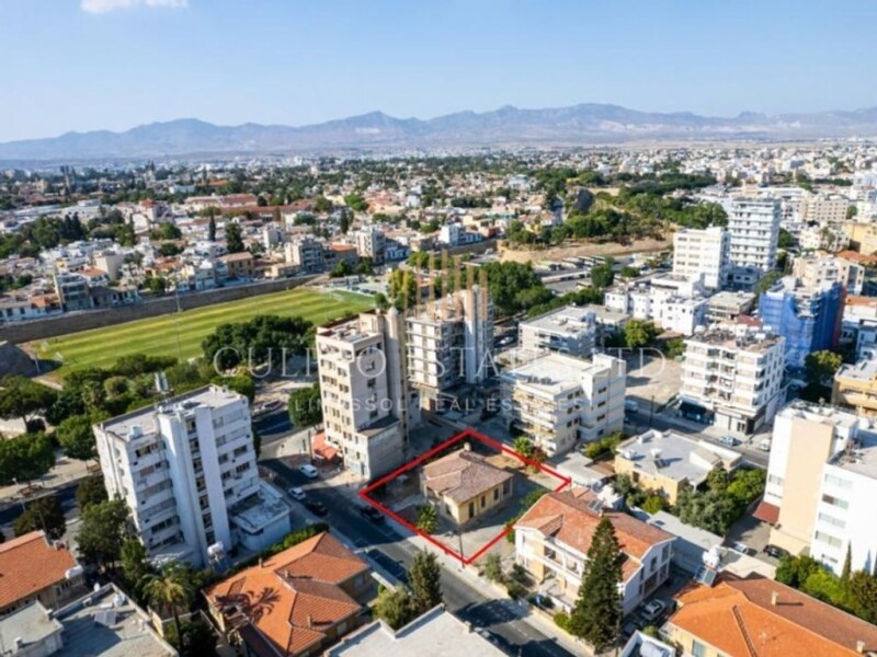 The property in question is a commercial plot situated in Nicosia. The plot contains an outdated house and is centrally located in Nicosia. This plot has direct access to a public asphalt road, featuring a total road frontage of 28 meters. The land encompasses an area of 773 square meters. The property enjoys a prime location within a recently developed neighborhood. It is surrounded by various business offices, upscale restaurants, coffee shops, a clinic, a pharmacy, and numerous other amenities. This site is particularly well-suited for the construction of an office building.
