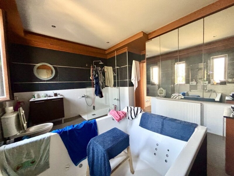 The house presents simplicity and functionality. All the areas are spacious. On the ground floor it consists of living and dinning rooms, large kitchen with a dinning area, laundry room and guest toilette. The big living room is situated at the front part of the house and the kitchen at the back, with direct access to a private garden. The garden area is mostly tiled. There is an option to create here a nicely designed garden and enough space to construct a private swimming pool. Next to the kitchen there is a generous laundry room. This space is a perfect solution for additional storage, cupboards and a special place for washing machine and dryer for clothes. The wall of the laundry room is connected to the wall of the neighbouring house. The first floor incorporates private spaces - 4 spacious bedrooms, en-suite master bedroom, family bathroom and a kitchenette by the staircase. The master bedroom is connected to a balcony and enjoys sea view. Due to its south orientation the house is bright and airy throughout the day. This comfortable property provides good and happy life to its residents.