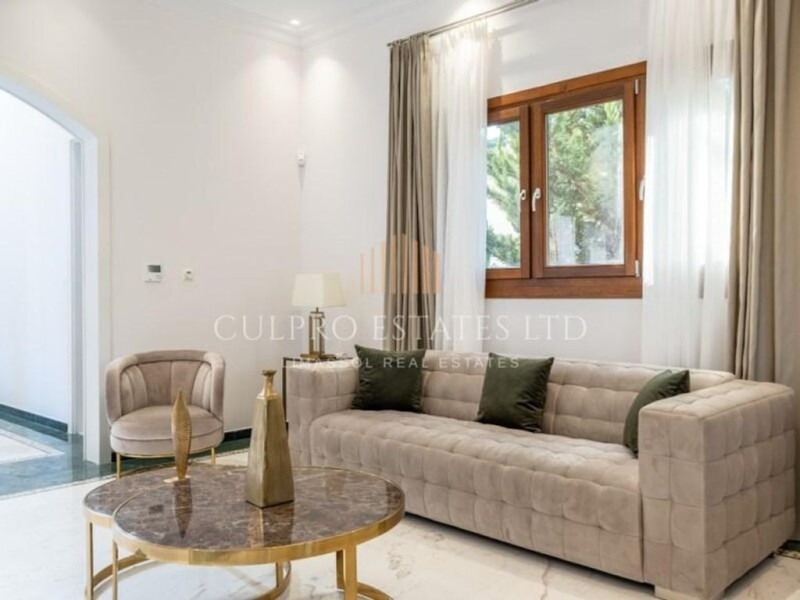 No VAT! Luxurious Mansion located in Kalogiri-Mouttagiaka area, one of Limassol's most prestigious areas. It consists of 6 bedrooms and 5 bathrooms. Total internal area 650 sq.m. Plot area 1,200 sq.m. Facilities: - Marble, mosaic and granite in majority of areas - Marble and real stone facades - Italian superior quality tiles in bathroom areas - Maid's bedroom - Italian fabric curtains - Sauna - Underfloor heating - Air conditioning in all areas - Alarm and CCTV system - Iroko wooden frame windows, doors and wardrobes - 2 separate solid wood custom made kitchens - Walk-in wardrobes - 3 TV areas. - Salt water swimming pool - Covered closed parking - 2 BBQ areas - Mature gardens throughout the property - Centre piece handmade fountain - Stone and marble Gazebo - Gym - Private loft - Photovoltaic Solar system that covers all electricity needs of the property. - No VAT. - Title deed.