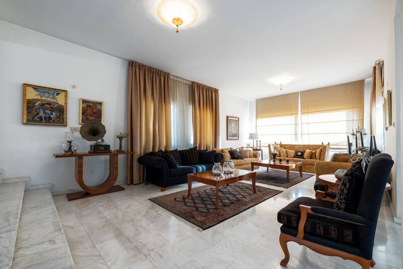 Kalogyri area, one of the most prestigious neighbourhoods of Limassol, is just 2 minutes away from the buzz of the city centre in Germasogeia and a 5 minutes' drive from the sea. This superb 4-bedroom residence sits on a very generous plot of land, with privacy and plenty of greenery around. Entering this spacious and well-designed property, you find yourself on the central lounge with the staircase element as a focal point. There are two sitting areas: the family area with a fireplace, and a formal dining/sitting area. There is a beautiful separate kitchen with access to the pool and BBQ area that has as much space as is needed for Cyprus’ al fresco living that we all cherish. The 80 sq m basement area has a maid’s room with a shower and kitchenette, plus a storage area. There is a double lock-up garage and a comfortable driveway. The first floor has a generously sized master bedroom with a walk-in wardrobe and a bathroom, the three guest bedrooms enjoy plenty of space too. A mature landscaped garden with a natural water well welcomes you outdoors.