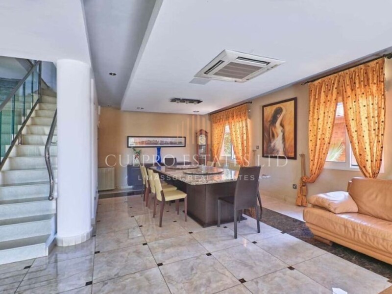 Reduced price from 1.7M for quick sale! 5-bedroom villa is located in Agios Tychonas area, above the highway, 2 minutes drive from Four Seasons hotel, 1.5 km from the sea. The house is surrounded by luxury residences and villas. The villa was built in 2009. Plot area: 1.050m2 Area of house: 500m2 Covered roof area: 90m2 Area of verandas: 60m2 - 2 floors - 5 bedrooms - 4 bathrooms - Double glazed windows - Central heating - VRV air-conditioning - Alarm system and security cameras - Swimming pool - Fish pond and a waterfall - Landscaped garden with mature trees and plantation - Paved yard - Garage - Title deed.