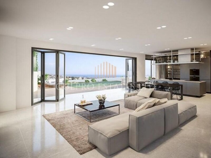 Luxury 4-bedroom villa with private swimming pool located in Agios Tychonas area, 10km from the sea. It has spectacular views of the Limassol coastline and marina. There are 6 luxury villas in the complex with stunning views to the sea, city and mountains. All villas are built with high quality building materials and finishes and modern design. Internal area: 312m2. Plot area: 630m2. The property is subject to VAT. Delivery: July 2023.