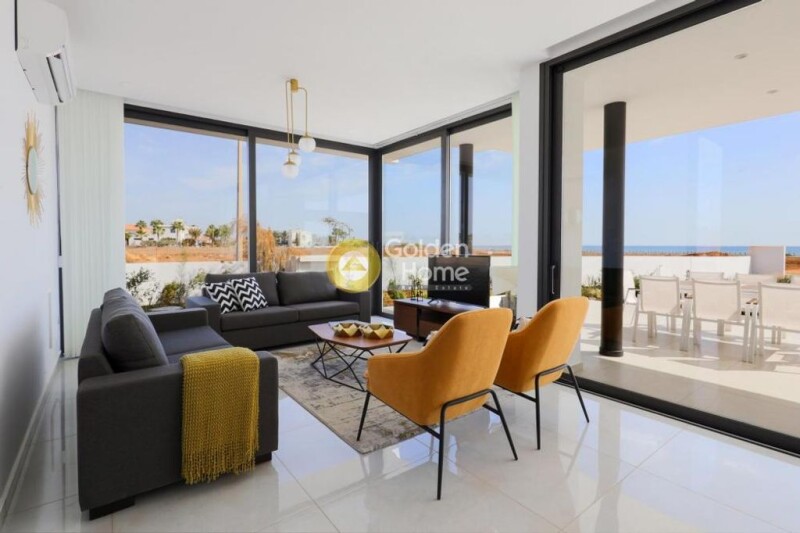 158,95m2 Internal Area / 31,6m2 Covered Verandas / 33,35m2 Uncovered Verandas / 84,85m2 Lower Level / 308,75m2 Total Buildable Area / Parking covered / 601m2 Plot / Swimming Pool : Infinity / 49m2 pool SEAFRONT VILLA with panoramic sea views. The residence has 3 floors which include a lower floor, ground floor & first floor. Ample balconies overlook lush greenery and an overflow high-tech swimming pool secluded in a beautifully landscaped garden, for residents to enjoy in the privacy of their own home. The residence boasts its own roof garden, with stunning sea views across the horizon. The peaceful area of Ayia Thekla has made a name for itself as a prime location for residential and holiday homes, thanks to its extensive natural beauty & close proximity to the Ayia Napa Marina. Despite this surge in popularity however, the area has retained its village charm, & remains a peaceful haven of incredible beauty. Stroll along white, sandy beaches & dip your toes into the crystal clear waters. Enjoy fresh seafood in the excellent restaurants dotted along the the coastline, with fresh fish supplied in abundance from Ayia Thekla’s picturesque fishing harbour. FEATURES : Ceramic tiling and marble internal staircases / Lower floor with utility and storage rooms / Granite Kitchen worktop and high quality finishes / Provision for TV, telephone, Internet access in all rooms / Security System / Private swimming pool with a wooden deck patio and outdoor shower / Private Covered Parking / Seafront Property / Panoramic Sea Views / Large open-plan spaces and functional living areas / Tranquil location & spacious gardens / Basement & roof garden are included, offering amazing views of new marina and Ayia Napa / Easy motorway access.