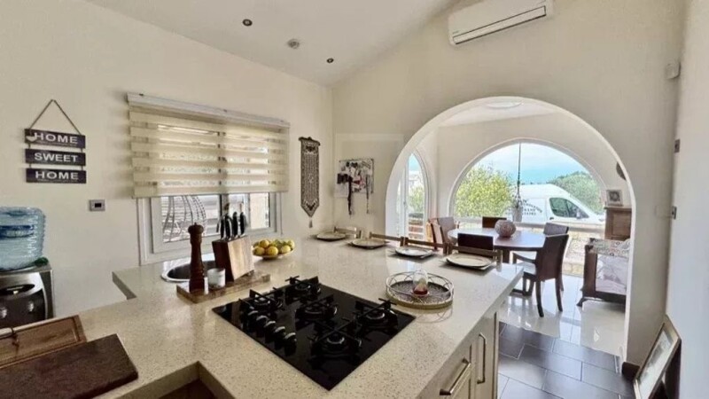 Exceptional villa located in Kato Paphos This five-bedroom bungalow is a perfect harmony of comfort, versatility, and elegant living, offering a thoughtfully designed space that adapts effortlessly to a variety of lifestyles. With a warm and inviting ambiance, the main residence is centered around a beautifully appointed kitchen, where a central island and breakfast bar create the perfect setting for casual dining or gathering with loved ones. A dedicated dining area enhances the space, while a separate utility room adds practicality to everyday life. Flowing seamlessly, the living area exudes charm, with a gas fireplace providing warmth and a cosy focal point. Patio doors from both bedrooms open directly onto the veranda and pool garden, inviting in soft natural light and creating a seamless connection between indoor and outdoor living. Complementing the main residence is a private three bedroom annex, spanning an impressive 90m². Designed with an open plan living, dining, and kitchen area, this separate retreat offers flexibility and independence perfect for hosting guests or serving as a rental opportunity for additional income. Beyond the main home and annex, a separate 70m² building provides even more possibilities, currently serving as a cinema room, home office, and additional leisure space. Whether used for work or play, this adaptable area enhances the property’s appeal, making it a true haven for entertainment and relaxation. Outside, the property unfolds into a beautifully designed outdoor space. A welcoming front patio garden sets the tone, while the expansive pool area offers the perfect setting for sun drenched afternoons or lively gatherings under the Mediterranean sky. Covered off road parking for two cars ensures convenience, while a gate at the bottom of the garden opens onto a peaceful green space, enhancing the home’s privacy and offering direct access to nature. With an internal area of 272m² and a covered veranda of 68m², this remarkable home is an ideal choice for families, professionals, or investors looking for a residence that offers both space and flexibility.