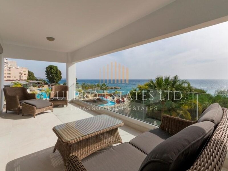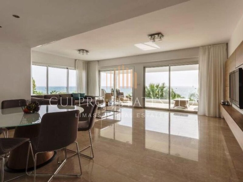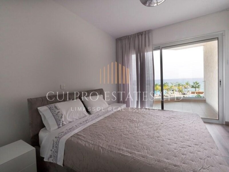 Luxury seafront 3-bedroom apartment located directly on the beach, overlooking palm trees, with unobstructed sea views. Situated in the tourist area of Limassol, the property is within walking distance of all amenities and is just a 10 minute drive along the seafront road to the town centre. - Open plan living/dining room with large patio doors leading out to a spacious balcony - Fully fitted kitchen with all electrical appliances - Fully furnished - Guest WC - 3 bedrooms (with en suite) - Main bathroom - Air conditioning throughout - Private parking - Communal swimming pool - Controlled access to the complex and the apartment block.