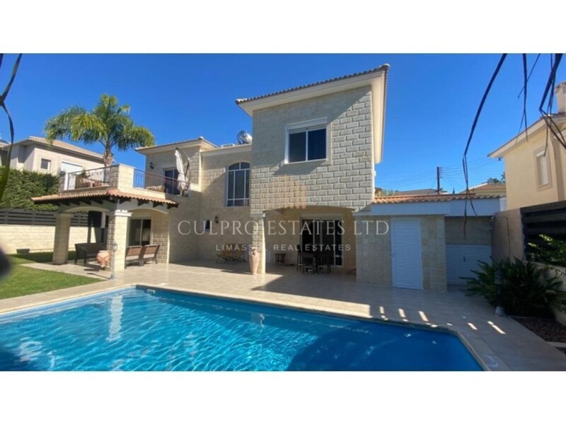 Elegant 3-Bedroom Villa in Agios Tychonas, Limassol. Experience the ideal blend of serenity and luxury in this exquisitely renovated 3-bedroom villa, situated in the esteemed area of Agios Tychonas. This residence offers a peaceful environment while being just minutes away from a Blue Flag beach, high-quality restaurants, shops, schools, and essential services, making it an ideal retreat for families and professionals alike. Prime Location: 5-minute drive to the beach and local amenities Refined Features: Constructed in 2007 and fully renovated in 2020 Expansive open-plan living spaces featuring a modern kitchen and dining area Covered veranda adjacent to the private pool, ideal for outdoor leisure Mature landscaped garden ensuring tranquility and privacy Private closed parking Upstairs Comfort: En-suite master bedroom with wardrobe and a spacious balcony offering sea views Two additional generously sized bedrooms and a full bathroom This villa epitomizes coastal sophistication, merging contemporary comforts with serene surroundings. Whether you seek a family residence or an investment opportunity, this property provides unparalleled convenience and allure. FEATURES Bedrooms: 3 Indoor area: 184 sqm Covered verandas: 31 sqm Uncovered verandas: 21 sqm Land area: approximately 585 sqm Floors: 2 1 guest WC 1 ensuite shower 1 bathroom Storage space Separate kitchen and dining area Open-plan living and dining area Closed parking facility Air conditioning throughout the house Central heating (diesel) Luxurious garden space Private pool WC/shower for the pool area Mosquito nets Year of completion: 2007 Renovated in 2020 Title deed available.
