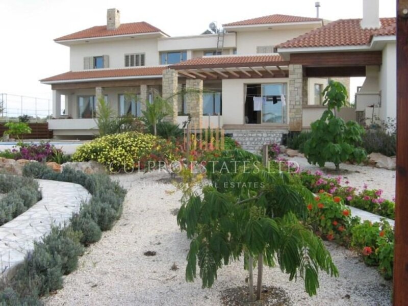 Luxury villa located in Protaras area. The house was built in 2007 in 5500 sq.m land with building permit, overlooking the sea (2 min away driving). Covered area 960 sq.m. It consists of two floors with basement, 5 bedrooms is on the 2nd floor and 1 bedroom is on the ground floor( guest's room) with its own bathroom. Maid's extra room, laundry room, swimming pool, surrounding gardens and tennis court. Security and alarm system installed with 6 CCTV cameras, basement for multiple use.