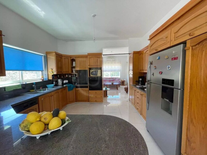 A beautiful house located in the popular area of Mesogi, in Kato Paphos. The 210 sq.m property is distributed over 2 floors and comprises an open plan living / dining room with semi separated kitchen, laundry room, 4 bedrooms, 3 bathrooms, parking for 6 cars and 2 garages used as storage rooms. Other features include solar panels, blinds, shutters, double glazing, air conditioning, central heating and fireplace. Additionally there is a 94 sq.m apartment offering an open plan living / dining room, kitchen, laundry room, 2 bedrooms, bathroom and 2 covered terraces. Outside is the fenced garden with fruit trees, bbq area and covered and uncovered terraces set on a large plot of 2475 sq.m.