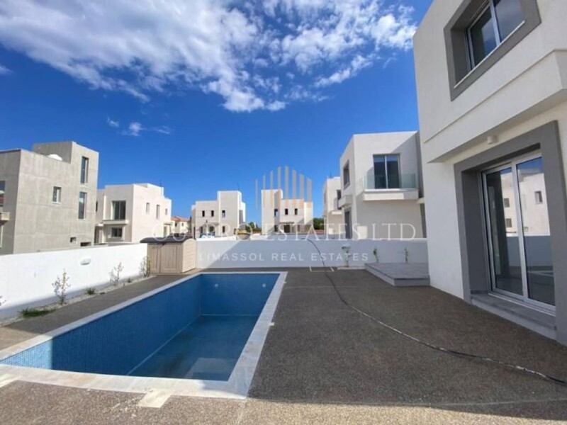 Modern complex with 10 villas located in the popular resort town of Protaras, just minutes from some of Europe's most revered beaches, within close range of the Protaras' many amenities. These include public and private schools, shops and supermarkets, as well as an abundance of vibrant nightlife and year-round cafes and restaurants. The houses are built to the highest specifications. - 2 levels - 3 bedrooms - Open plan kitchen and living area - Private swimming pool - Parking. The property is subject to VAT. Delivery: September 2023. Prices: House No.3: 393,000 + VAT House No.8: 400,000 + VAT House No.9: 400,000 + VAT.
