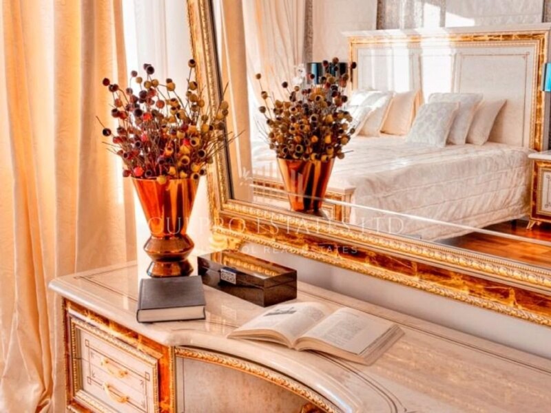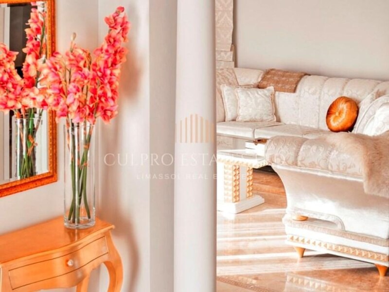 Complex is located in a beautiful and prestige area of Limassol - Agios Tychonas . - Close to 4-5* star hotel beaches (800 м), close to the rest of infrastructure. - Located on the hill side, it has marvelous sea view. - Neighborhood - Cypriot and foreign businessman, high net worth individuals. - Low density of construction, so the area can offer limited number of villas for sale. Villa is on sale with furniture, accessories, garden landscape design. The house has central control of light and shutters. The villa has 4 large bedrooms, each with its own bathroom. Neoclassical villa is performed in a neutral beige tone. Used on the floors Italian marble travertine, mosaic insert firm Versace, Italian kitchen with glass surfaces, cast top in the bio-material Corean DuPont, plumbing company Villeroy & Boch. The ground floor has a grand entrance into the house with light on the floor, with columns, marble imperador rich chocolate color. The villa has a built-in floor pool with Jacuzzi. Covered area - 500 sq.m. Plot size - 686 sq.m. Distinguishing features: high ceilings and doors large en-suite bedrooms branded interior material sanitary ware 'Villeroy & Boch' VERSACE decors heated overflow and infinity swimming pools landscape design with matured plants under floor heating VRV a/c systems SPA, sauna SMART home and more Title deed. Ready to move in.
