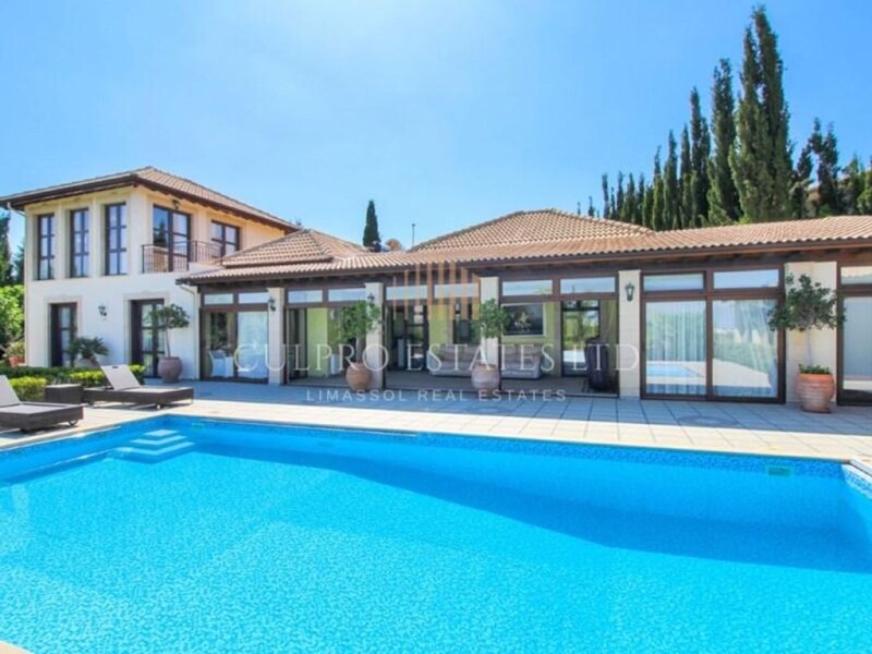 Luxury 5 bedroom villa with sea view located in Aphrodite Hills Resort Paphos, in a prestigious and tranquil location, within walking distance to the village square facilities. Total Area: 325 sq.m. Plot Area: 1997 sq.m. - 5 bedrooms. - 4 bathrooms. - Fully furnished. - Air conditioning. - Central heating. - High ceilings. - High-end Italian Design Kitchen cupboards. - Kitchen with modern brand appliances. - Fireplace. - Large terraces. - Security system. - Spacious garden. - Heated swimming pool. - Detached entertainment room. - Jacuzzi with amazing views to the golf course and the sea. - Electric gates.