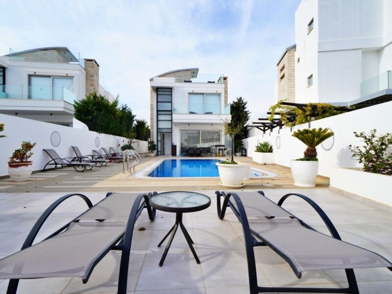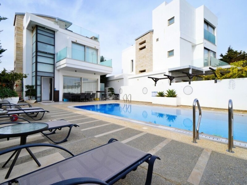 Presenting an exceptional 5-bedroom villa nestled in the prestigious Protaras seafront area. As you approach the exclusive complex, impressive electronic gates ensure privacy and security, leading to the underground garage accessible via separate electronic doors for each property. An internal elevator provides access from the basement garage to each floor. The basement features a self-contained living space with a double bedroom, bathroom, small kitchen/utility area, and a spacious living room ideal for a cinema room or snug. The main floor offers an open-plan living, dining, and kitchen area with floor-to-ceiling patio doors opening onto the magnificent pool terrace, perfect for entertaining. The modern kitchen is fully equipped and leads to the back garden. Additionally, a ground floor bedroom and shower room provide convenience. The first floor hosts three double bedrooms, all with fitted wardrobes and ensuite shower rooms. The master bedroom boasts a larger walk-in shower and wall-to-wall patio doors opening onto a glass-walled veranda with sea views. Further, the villa features a large roof terrace with panoramic sea views, perfect for enjoying serene evenings or storm watching. The garden is ideal for hosting parties or family gatherings, featuring an expansive plot, uncovered pool terrace, covered outdoor kitchen and dining area, and a roof terrace. This stunning villa offers tranquility yet is close to all amenities and beaches, making it an excellent residential home or investment opportunity. Viewing is highly recommended to appreciate its outstanding features!.