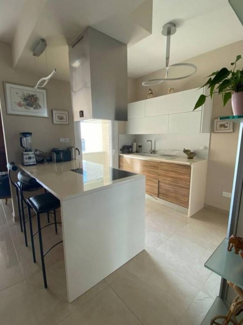 Excellent large apartment in a modern complex in Agios Tychonas on the 4th floor. It has 4 bedrooms, 3 bathrooms, a huge living room, Italian furniture, a private roof terrace with barbecue area and beautiful views, there is a fireplace, all appliances, swimming pool, gym, 2 covered parking places.