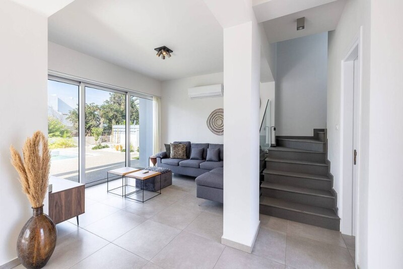 This new contemporary 3-bedroom villa is nestled in the peaceful neighborhood of Kapparis in Protaras, just a short walk from the captivating blue flag beach of Agia Triada. The project comprises only eight houses, creating a private and exclusive living environment. Each villa boasts a spacious open-plan living and dining area, an L-shaped kitchen, and a guest toilet on the ground floor. The floor-to-ceiling veranda doors flood the interior with natural light, establishing a bright and cosy atmosphere. On the upper floor, three bedrooms await, one of which is a master bedroom with an ensuite bathroom, while the other two share a family bathroom. The outdoor area is equally inviting: on a generous plot situated a private swimming pool, a comfortable pool terrace with BBQ area, all surrounded by picturesque views of the neighbourhood. The property is offered for sale unfurnished and without electrical appliances. The development ensures convenient access to shops, supermarkets, dining venues, and private schools within a short drive. Additionally, the location provides quick access to the motorway leading to Larnaca International Airport, facilitating seamless travel across all the island. Seize the opportunity to own this gorgeous villa, ideal for investment or permanent residence, to experience the Mediterranean lifestyle in comfort and style.
