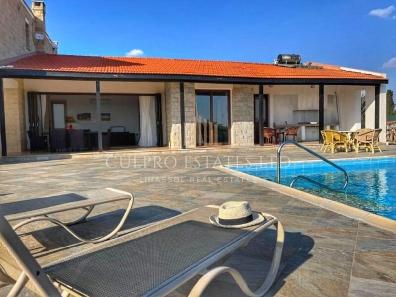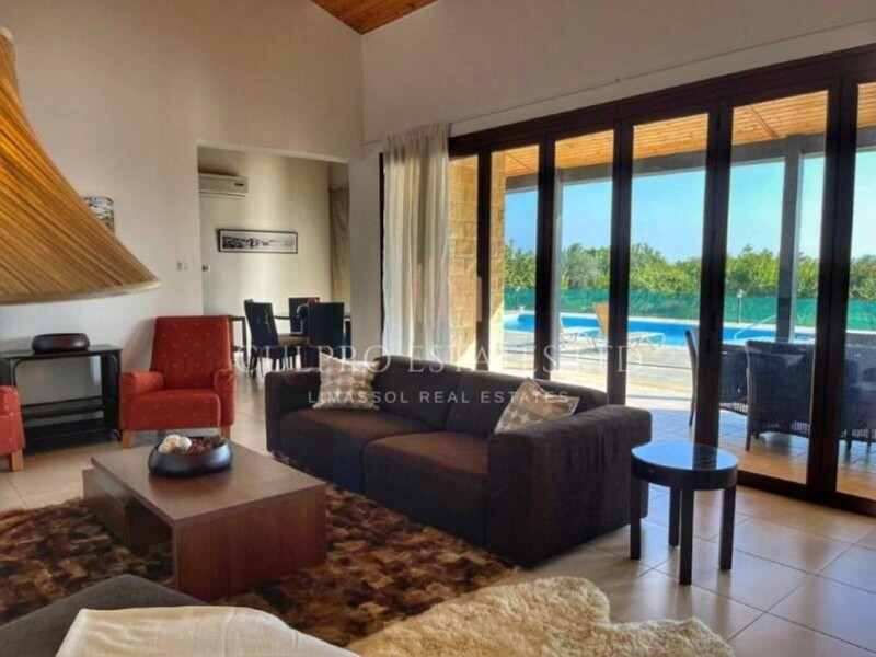 *This new lovely 3 bedroom detached house located in a quiet area of Maroni - a central location between Larnaca and Limassol. It is only 2 minutes away from the beach and 5 minutes drive to Zyggi port. The house stands on the private plot of 3025 sq. meters and is surrounded by agricultural land. The house consists of: Open space living room with stone fireplace, Separate kitchen / diner Cloakroom Ground floor double bedroom with en-suite bathroom 2 double bedrooms with fitted wardrobes on the 1st floor Bathrooms - 1 ensuite, a shared bathroom and a guest WC Large covered terrace Store Room No VAT. Large garden with a variety of fruit trees and swimming pool. Private parking for 2 cars. The house is offered for rent fully furnished and equipped with home electrical appliances,a/c, underfloor heating. Dogs are now allowed.