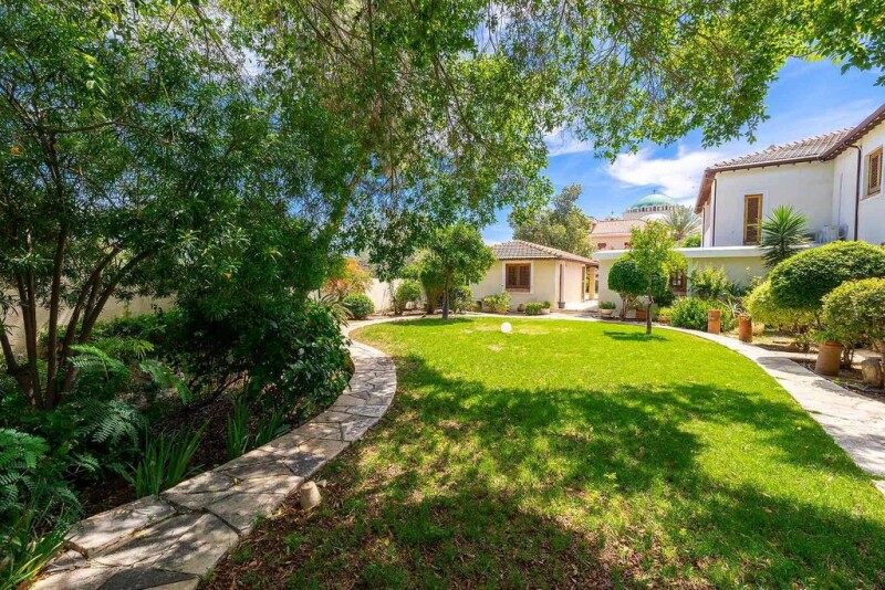 Discover luxury living in this exquisite residence located in the prestigious Chryseleousa neighborhood of Strovolos. Set on over 3000 square meters of lush land, this expansive estate features a spacious main house with four bedrooms and four bathrooms, offering comfort and style for family and guests. The villa boasts generous living areas and inviting bedrooms, with an interior designed to exude timeless elegance through sophisticated elements and refined colors. The well-appointed kitchen provides ample space for culinary endeavors and entertaining guests. Enjoy a range of desirable features, including air conditioning in all rooms and central heating, ensuring a comfortable indoor environment throughout the year. Step outside to experience ultimate outdoor living with a private pool and meticulously landscaped gardens, perfect for entertaining or tranquil relaxation. Additionally, the property includes a charming guest house and a separate gym area with a steam room, offering versatility and convenience for hosting visitors. Nestled in a coveted neighborhood, this home presents an unparalleled opportunity for those seeking refined elegance and abundant space in a prime location, epitomizing luxurious and serene living.