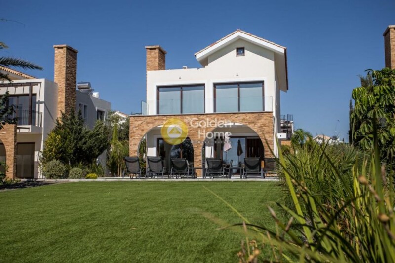 165,72m2 Internal Area / 58,06m2 Lower Level / 223,78m2 Total Buildable Area / Parking covered / 773m2 Plot / Swimming Pool : Overflow DESCRIPTION : Located in a peaceful private community on the seashore west of Ayia Napa, this beautiful frontline villa has an expansive lush garden plot & sea views. Intelligently designed to mirror traditional architecture while bringing full modern amenities, the villa has large interior & exterior living areas, bright bedrooms with sea views, & a private pool in a garden & green area directly to the sea. The villa is sold fully furnished with appliances. FEATURES : Expansive garden plot / Beautiful classic villa / Private 7 m x 10 m swimming pool / Barbecue with pergola seating area / Outdoor private solid-wood sauna / Fully landscaped growing garden / Luxury tile and stone finishes / Fully furnished by interior designer / Cleverly designed open plan kitchen, dining area and living room, providing extra comfort and space while maximising sea views / Picturesque seaside location / Close to all amenities and famous Blue Flag soft sand beaches / Easy access to motorway / Private parking.