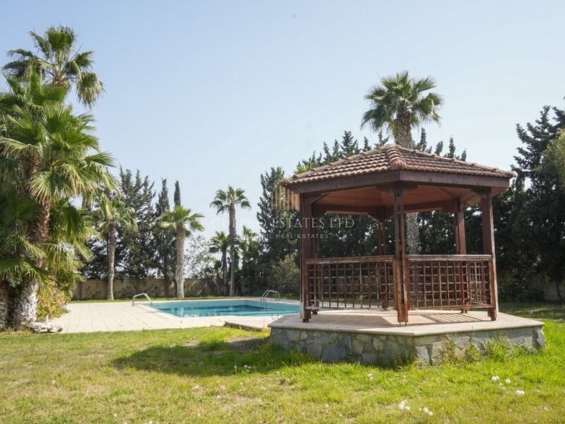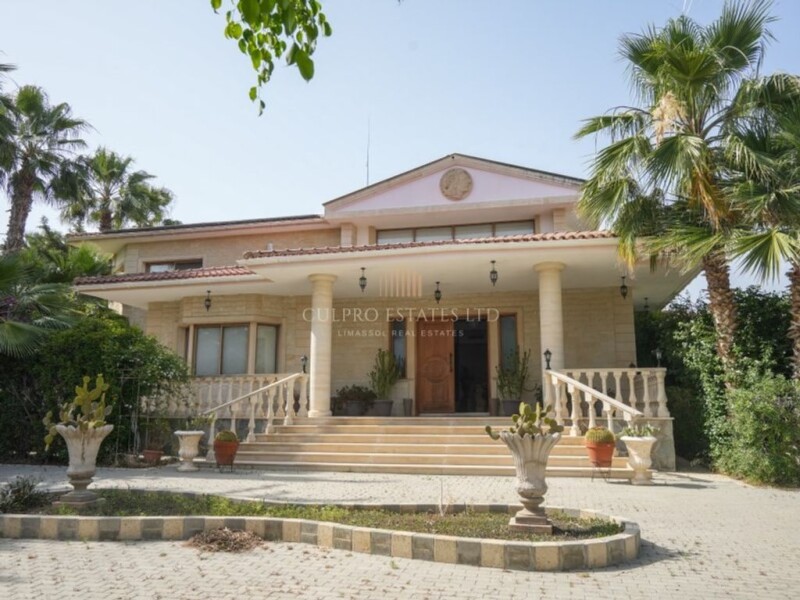 This property boasts an array of amenities and features tailored for comfort, convenience, and luxury. Notable facilities include a split system air conditioning, a beautifully landscaped garden, a maid's room, garage parking, a private pool, solar photovoltaic panels, a solar water heater, and generous storage options. Covered Verandas: 275m² Uncovered Verandas: 262m² Covered Area: 1,353m² Plot Area: 13,714m Bedrooms: 5 Bathrooms: 5 Furnished: Fully Furnished Kitchen Type: Open Plan Covered Parking: 6 Uncovered Parking: 10 Floor Type: Parquet Construction Year: 2001 Town Planning Zone: Residential Mountain View: Yes The features significantly enhance the living experience, offering an alarm system, multiple balconies (front, back, and large), a BBQ area, bright interiors, CCTV surveillance, ceiling fans, a combined kitchen and dining area, scenic country views, double glazing, and convenient access to highways and main roads. Additional attributes comprise en suite bathrooms, an automated entrance gate, fitted wardrobes, garbage disposal, an expansive garden, a ground floor bedroom, a guest WC, internal stairs, kitchen appliances, a kitchenette, a laundry room, proximity to local amenities, adjacency to green spaces, an open plan layout, a private water supply, parquet flooring, a playroom, a pool bar, a tranquil environment, spacious rooms, a combination of tile and wooden flooring, under-stairs storage, a utility room, and verandas (front, back, and large). The property also enjoys village views and includes a water well. The villa is designed over two floors. The ground floor includes a main entrance with a guest toilet, a spacious open-plan living room with a dining area for guests, and a kitchen with a dining area that opens to a large covered veranda. Additionally, there is a ground floor bedroom with an en-suite bathroom, an office with a library and snooker table, and a second separate living room with an adjoining bathroom. On the first floor, there is one master bedroom complete with a walk-in wardrobe and an expansive bathroom, along with three generously sized bedrooms, each equipped with en-suite bathrooms. This villa is exceptionally comfortable and spacious, maintained in excellent condition, and possesses a building permit allowing for 90% density. FACILITIES Air conditioning, Split system Landscaped garden Maid's quarters Parking space, Garage Private swimming pool Solar photovoltaic panels Solar water heating system Storage area FEATURES Security alarm system Balcony Rear balcony Front balcony Barbecue area Well-lit CCTV surveillance Ceiling fans Combined kitchen and dining space Countryside view Double-glazed windows Convenient access to highways Proximity to main roads En suite bathroom Automated entrance gate Fitted wardrobes Waste disposal system Expansive garden Ground floor bedroom Guest restroom Internal staircase Kitchen appliances included Kitchenette Laundry facilities Close to amenities Adjacent to green space Open-plan layout Independent water supply Parquet flooring Recreation room Poolside bar Serene environment Spacious living areas Tiled flooring Under-stair storage Utility space Rear veranda Front veranda Large veranda Village view Water well Hardwood flooring.