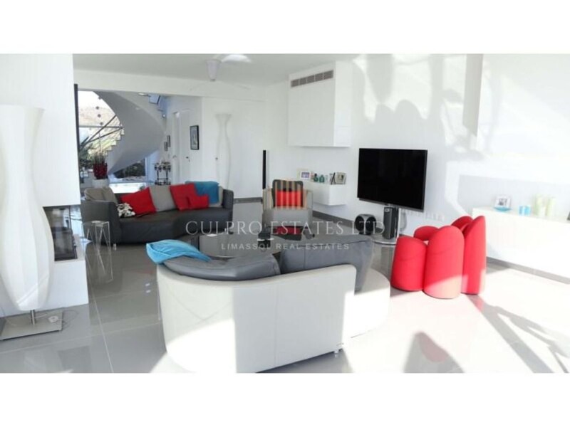 Spectacular 5-bedroom villa for sale, built in a green area of Maroni where no other properties of its kind can be built again, offering complete privacy and amazing views. This modern minimalistic villa was built using high-quality materials and finishes, complete with a unique infinity pool. - 5 Bedrooms all en-suite - 2 Guest toilets - Covered area 353 m2 + 70 m2 basement - Plot area 7400 m2 - Built in 2014 - Modern, minimalist design - High-quality specs and finishing - A/C all rooms/ underfloor heating - Alarm system - Sea/ mountain views - Infinity pool - BBQ Area - Mature garden - Library/game room - Green/quiet area - Water well - Storage Room - Double Garage - Title deeds.
