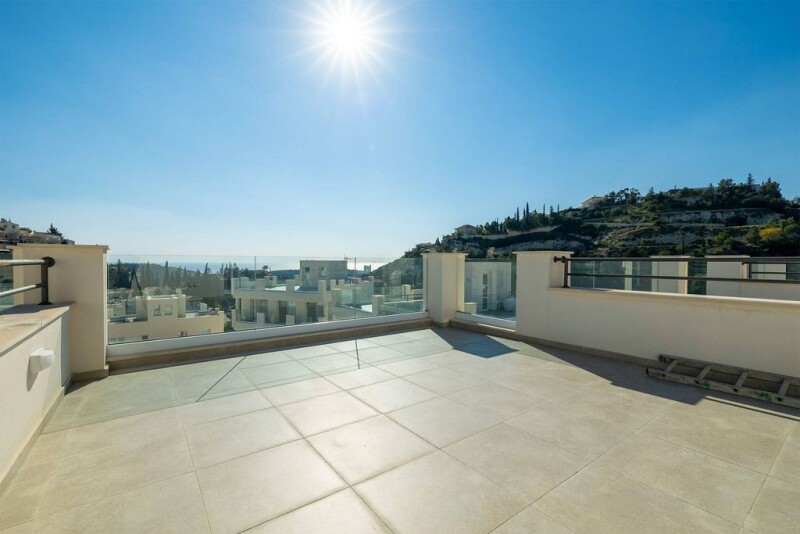 This beautiful 2-bedroom 3 bathroom townhouse is situated in Agios Tychonas, a prestigious suburb of Limassol, which promises a marvelous blend of the peaceful green residential area with the convenience of being close to all the urban amenities of the city and the sandy beaches. Entering the property through a nice garden you are welcomed by a spacious living area that extends into a front garden and the veranda with a pool view. The open-plan kitchen and dining room further enhance the feeling of light and space. There is also a guest WC on the ground floor. The first floor boasts some nice sea views and has two bedrooms: the master bedroom with an en-suite bathroom and the guest bedroom with a family bathroom. The living space is crowned by a wonderful roof terrace with sea views, allowing all the pleasures of al fresco living that Cyprus is famous for. The property is new, unfurnished, without any prior use, and is finished to a very high standard. This townhouse is allocated an underground private parking space.