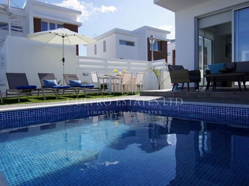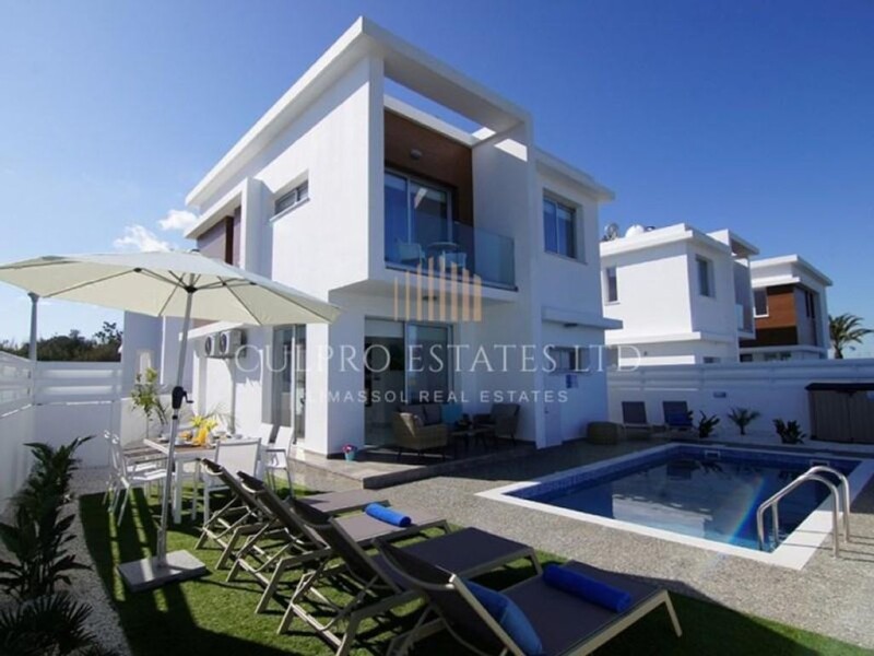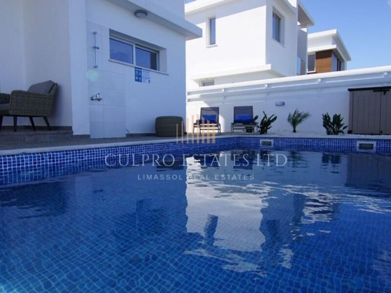 Modern and stylish complex located in Protaras, in walking distance to all the amentities and Kapparis beach. It consists of 10 villas with 3 bedrooms and sea views. The highway to Larnaca is just 3 km away. Covered area: 118m2 Uncovered veranda: 7m2 Plot size: 228m2 Year built: 2019 - 400m to the beach - Sea views - Private parking - Swimming pool - Spacious living area with kitchen - 3 good size bedrooms Ready to move in. No VAT.