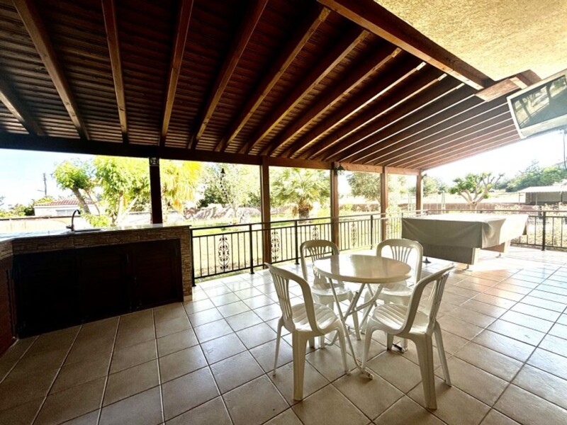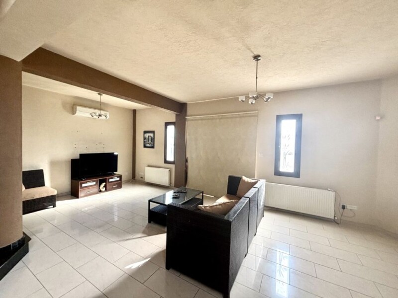 A 4 bedroom detached villa for sale plus office in Agios Sylas, Limassol. The property is located near parks and is a short drive to the city with supermarkets, schools and more nearby. The ground level has an open plan kitchen which is fully equipped, utility room, living/dining area, office and guest wc. The garage has a douche area. Upstairs there are 3 bedrooms with master en suite and family bathroom. The attic as well as having storage space has a wc also therefore can also be turned into a room. The property is offered unfurnished with a/c units and an equipped kitchen. .