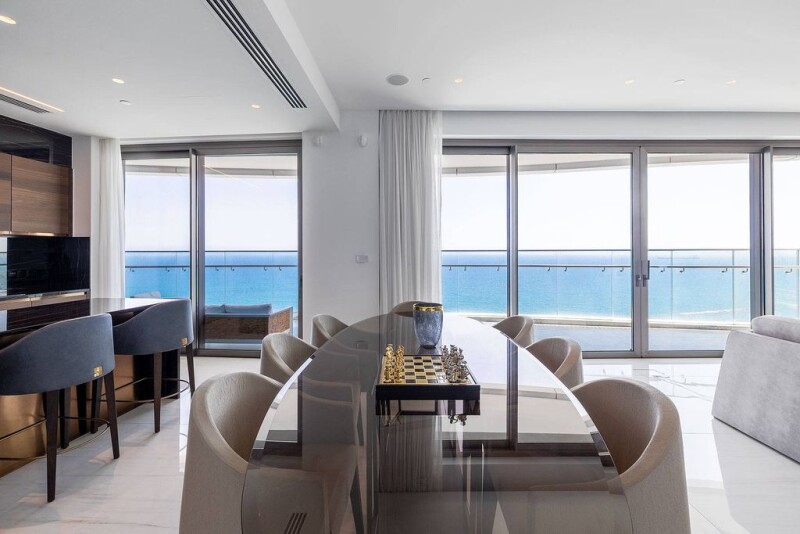 This splendid 13th-floor end unit in a high-rise seafront building offers numerous exclusive features. Situated in a development with only four apartments per floor, this freehold property ensures privacy and tranquility with 24/7 security. The apartment consists of 4 bedrooms and 5 bathrooms, making it an ideal space for families or those who enjoy extra room. The wrap-around balcony provides breathtaking, unobstructed views of both the sea and the mountains. The interior is fitted with premium appliances including an integrated washing machine, dishwasher, and tumble dryer. Underfloor heating and full air conditioning in every room ensure comfort year-round. Modern conveniences include an internal alarm system, and remote control for both air conditioning and lighting via an app. For parking, the unit includes two secure spaces: one underground with electric door access and one outside in a secure area with electric gate access. There is also a locked storage room underground next to the parking space. Residents can enjoy an array of amenities such as an indoor swimming pool, an outdoor pool with sea views, a fully equipped gym, steam and sauna rooms, and a treatment room. Payment in crypto is accepted for this property.